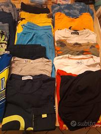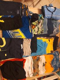 Abbigliamento misto da bimbo/ragazzo taglia 10/14 anni 7 pantaloni/jeans lunghi e corti 2 completi corti 4 maglie corte 1 pigiama 7 maglie/felpe lunghe Vendo a 25€