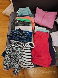 Vendo in blocco 61 capi di abbigliamento bambina 8-12 anni, in ottime condizioni, usati pochissimo, tutti perfettamente tenuti. Kit composto da circa: 20 magliette 3 jeans 2 salopette 13 pantaloncini corti 2 pantaloni invernali 1 pantalone tuta 1 pigiama 5 leggings pinocchietto 3 felpe 1 giubbino jeans 2 cappellini 1 gonna-pantalone 3 vestitini estivi 1 completino top e pantaloncino 2 costumi da bagno interi 1 costume da bagno 2 pezzi Vendo in blocco a 1 euro/cad se presi tutti in blocco, oppure 2 euro/cad se li vuoi scegliere (minimo 15 capi)