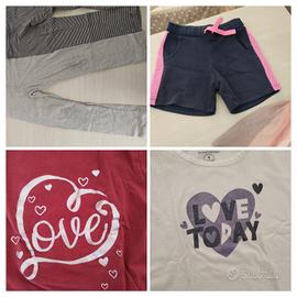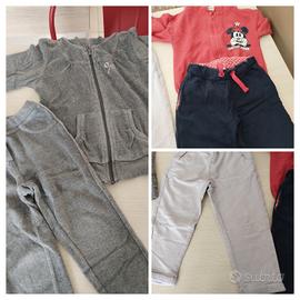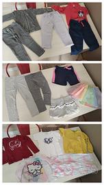 Vendo set di abbigliamento da bambina, in buone condizioni, così composto: - una tuta grigia in ciniglia OVS ( cursore un po' ossidato) - una tuta garzata grossa, rossa e blu con Minnie , Disney ( buone condizioni) - pantalone lilla garzato , Zara ( ginocchia appena scolorite) - 2 leggins , uno grigio ( con ginocchia appena scolorite)e uno a righe in cotone OVS - un pantaloncino corto blu e rosa in cotone , Benetton - 2 gonnelline , una grigia ovs, una multicolore con tulle - t-shirt manica lunga bordeaux, bluKids , (con stampa appena rovinata) -t-shirt manica corta, Losan - felpa verdina Benetton ( con macchia rossa sotto la scritta) - pigiama Hello Kitty Abbigliamento usato, quindi presenta qualche piccolo difetto come segnalato in descrizione. Consegna/ ritiro a San Donà di Piave Contattare in privato per ulteriori informazioni.