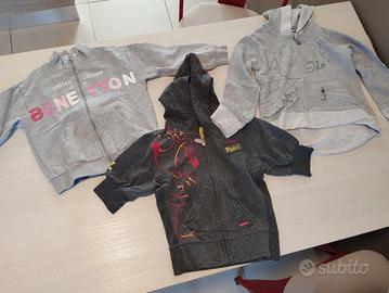 Vendo lotto di vestiti primavera estate , da bambina , taglia 4-5 anni. Abbigliamento in ottimo stato. I capi con difetti sono segnalati - 3 felpe garzate. Una grigia IDO, una griglia Benetton con scritta appena rovinata,una manica corta grigia scuro -3 t-shirt manica corta. Una panna con albero disegnato, presenta piccola macchia sul disegno. Una grigia con disegno Minnie -1 canottiera con stampa bambolina -2 canottiere cotone, una forellata -2 pantaloncini corti, uno lilla uno azzurro con fiori blu e rosa -1 costume Tezenis nuovo senza cartellino -1 pantalone lungo nero, garzato
