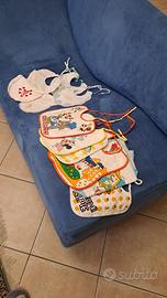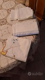 6 bavaglini e tre lenzuola culla di cui uno leggermente stinto.)