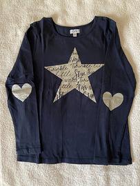 - Maglietta blu con stella e cuori argento "Ovs" - 8/9 anni, cm. 134 - € 4.-