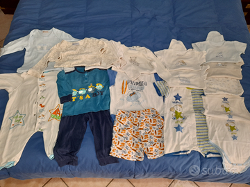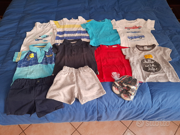 Comprende 4 body manica lunga, 7 body manica corta, 4 pigiamini leggeri, 8 magliette manica corta,3 magliette manica lunga, 2 pantaloncini, 4 completini felpa con pantaloni o jeans, 2 completi per cerimonia e sandaletti num 20. Regalo 4 paia di antiscivolo. Prezzo da concordare in base a ciò che interessa.