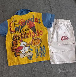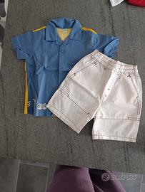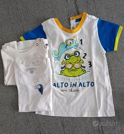 , 1 maglia cotone manica lunga come nuova,. 1 camicia fantasia con stampa in fondo un pochino sbiadita, 3 maglie cotone mezza manica, 1 body canottiera, 1 bermuda