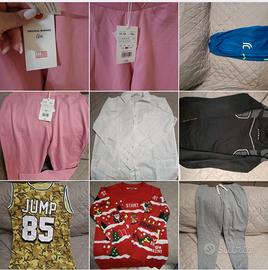 Vendo abbigliamento per bambino 7-10 anni a €2, ad eccezione della maglietta di Natale, nuovissima, a €7 e del k-way da calcio, nuovo, a €10