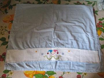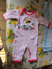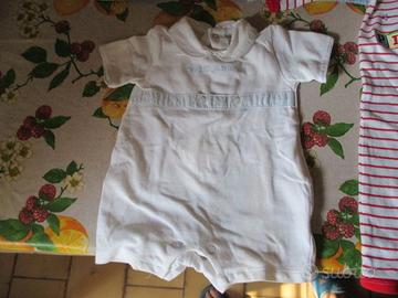 Nr. 1 tutina (E 3), 1 pigiamino (E 3), 1 lenzuolino ricamato per passeggino (E 2), 2 paia di scarpette di cotone nuove in confezione (E 4). Disponibili, per inutilizzo, altro abbigliamento per varie età tra cui giubbini e smanicati, jeans, tute, alcune paia di scarpe, maglie di cotone a maniche lunghe, 2 abiti per Comunione o per damigella: 1 classico, l'altro più particolare, 1 coprispalle in filo panna e rosa antico lavorato a mano all'uncinetto, 1 culla, 1 piumone per culla, giochi tra cui: 1 biliardino/calcio balilla, 1 tappeto puzzle, 1 Tappeto Attività di Peppa Pig, 1 moto giocattolo per bimbe, 1 valigetta del dottore con gli strumenti, alcuni Gormiti, alcune macchinine e camion, pupazzi e bambole di peluche e di stoffa grandi e piccoli