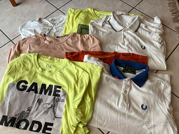 Lotto abbigliamento composto da: - 7 maglie mezza manica - 3 canotte - 2 camicie mezza manica - 3 maglie manica lunga cotone - 1 maglioncino di cotone - 1 felpa di cotone leggera