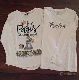 Lotto di abbigliamento per bambina 10/13 anni, composto da 2 felpe, un maglioncino e 2 magliette a manica lunga.