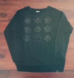 - Maglioncino nero morbidissimo con smile e fiocchi di neve in paillettes