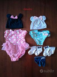 CON L'ACQUISTO DI TUTTO LO STOCK REGALO COMPLETINO (1-3 mesi) "MINNIE CON 2 BERRETTINI" (leggermente rovinato sulla gonnina), COSTUMINO, 3 PAIA DI CALZINI IN COTONE.