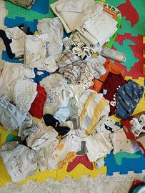 Vendo scatolone abbigliamento neonato, body 0-9, tutine, completo battesimo scarpette comprese, scarpe Adidas, asciugamano, pantaloni, maglie, tutine, calze, alcuni giochini