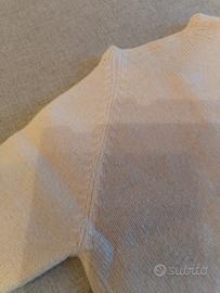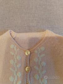 golfino in lana di colore rosa e panna, manica a raglan.