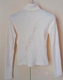 maglione da donna invernale qualità medi italy, leggero ti darà il giusto grado di calore, 100% PC., collo alto, elasticizzato, e un po stretto ma tranquilla essendo elasticizzato la testa entra, colori sul panna e oro e bronzo con effetto venature tipo marmorio e stupendo!! laminture sbrillanti! stupendo!!, Nulla viene via, perché e di buona manifattura, molto particolare, taglia S/ tutto e come viene descritto e come da foto nessuna rottura ne difetti perfetto sembra quasi come se fosse pari a nuovo, ormai non si trova più , etichetta nel collo era adesiva venuta via durante il lavaggio, l'altra etichetta è sciupata sbagliata tenderà a sfillacciarsi nulla che possa servire inrilevante, modello che arriva alla cintura, regolati bene se concide propio con le tue misure altezza 51/ cm./ spalle 42/ 43/ cm./ ascelle 43/ cm./ maniche lunghe 60/ cm./ indossato solo 2/ volte lavato igenizzato sembra quasi come se fosse pari a nuovo in ottime condizioni, possibilità di ritiro a mano spese di spedizione da concordare l'imballaggio sarà adattato e curato. e molto bella!!🤩😍
