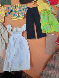 abiti anni 70 per bambole tipo Barbie, pelliccia, abito sposa, costumi,pantaloni,giacche e camicie ,trench,due borsette,poncho. tutti i pezzi che sono in foto venduti in blocco a 15 euro totali