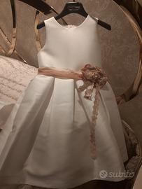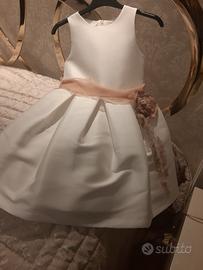 Vendo due bellissimi abiti cerimoniali da bambina, uno taglia 6 anni l altro 8 anni. Nuovi senza etichette. Colore bianco latte con cintura rosa cipria e spilla a fiore applicata . Bellissimi. 150€ cadauno.