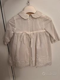 Abito cerimonia Aletta ,bianco velo superiore in pizzo ,maniche lunghe , grazioso fiocchetto posteriore. Mai indossato etichetta tolta solo per rinfrescarlo in lavanderia. Taglia 6m -68 cm