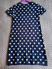 Abitino Idexè m/m in maglia sfondo blu navy decorato da cuoricini bianchi. Taglia 13/14 anni cm 164.