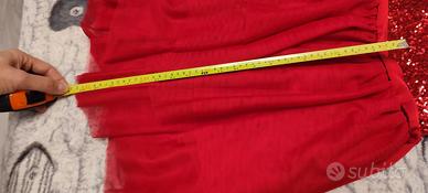 Abito bambina rosso con paillettes e gonna in tulle colore rosso. Lunghezza abito da spallina a bordo gonna 75 cm. Adatto per bambine di 5 anni