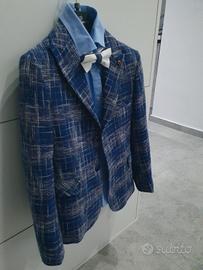 bellissimo alla moda vestito completo come in foto, giacca, camicia papillon e pantalone bianco... ottimo da mettere la domenica o per ricorrenze tipo le imminenti festività.