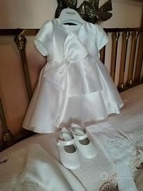 vendo abito battesimale in mikado di seta per bambina, acquistato ad aprile presso nota boutique della moda bimbi (f.lli Martone), taglia 9 mesi completo di bolerino in filo di cotone e scarpine taglia 18. Pagato tutto 270 euro (ho ancora gli scontrini e cartellini). Ovviamente il tutto è praticamente nuovo perché tenuto addosso poche ore, vestito scarpe e golfino tutto intatto e già portato in lavanderia.