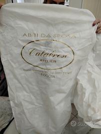 Corpetto con delicati ricami e manichine in tulle trasparente che donano leggerezza e raffinatezza. Gonna ampia e vaporosa in più strati di tulle, di grande effetto scenico.