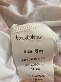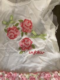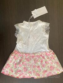 Vestito Biblos nuovo con cartellino. Disegno con fiori. Mezze maniche con merletto. porta un merletto anche sulla gonna. Made in Italy. Misura 6 mesi.
