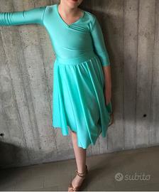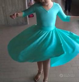 Vedo abito da ballo per bimba di 10 anni. Confezionato a mano da una sarta specializzata in abiti per le competizioni di salsa e latino, stoffa colore azzurro tiffany.