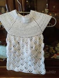 Abito bimba misura 0, 3 mesi in cotone bianco fatto a mano All. Uncinetto spedizione a carico acquirente