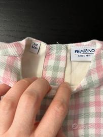 Abito bimba Primigino 62cm a quadretti con bottoni e fiocco sul retro e merletto ad impreziosire la fodera. Indossato un’unica volta, vendo pari a nuovo.