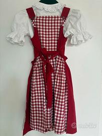 Abito bimba, acquistato in Tirolo, misura 110 cm, con camicetta e sopra-gonna staccabili, piccole rifiniture come i bottoncini della camicetta, le stelle alpine del vestito.