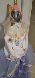vendesi abito "unicorno" per bimba, completo di coroncina, perfetto in ogni parte, non rovinato o scucito, misure 130×40 (alla vita), ideale anche per compleanno