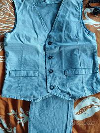 Vendo vestito completo da cerimonia per bambino taglia 8 anni composto da: pantalone regolabile in vita camicia gilet papillon Marca idexe, tutto cotone molto morbido ed elasticizzato, usato 2 volte, per la prima comunione e per un battesimo, ottimo anche per matrimonio e qualsiasi occasione in cui bisogna essere eleganti ma è comunque un completo molto comodo. Per altre foto o info contattatemi pure