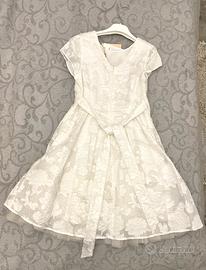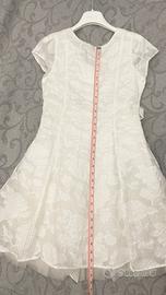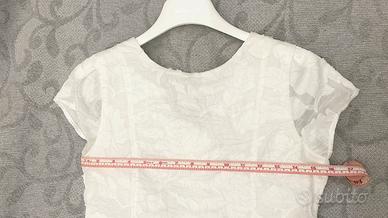 Vendo splendido abito da cerimonia color avorio del rinomato marchio italiano Alice Pi. Il vestito è NUOVO, mai indossato e ancora con il cartellino originale (prezzo di listino 122€). L'abito è caratterizzato da un raffinato tessuto operato con motivo a rose a rilievo e un fiocco in vita sul retro, ideale per Prima Comunione, Cresima o come damigella a un matrimonio. Misure reali per conferma taglia (14 anni / 164 cm): • Lunghezza totale: 84 cm • Larghezza vita: 38 cm • Larghezza ascella-ascella: 40 cm Lo vendo solo perché mia figlia ha scelto all'ultimo momento un outfit con pantaloni. Condizioni impeccabili, conservato con cura. Prezzo: 50 € Ritiro/Spedizione: Disponibile per ritiro a mano a Desio (MB) o spedizione rapida e sicura con TuttoSubito.