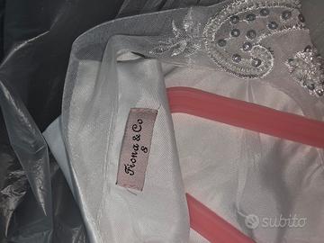 Vendo bellissimo abito da cerimonia per bambina della marca Fiona & Co., ideale per Prima Comunione, damigella o eventi speciali. L'abito è di colore bianco ottico ed è caratterizzato da: Corpetto: Decorato con raffinati ricami floreali in pizzo, paillettes e perline che donano un punto luce delicato. Gonna: Ampia e vaporosa in tulle a più strati, con bordo rifinito per un effetto "nuvola". Chiusura: Elegante intreccio a corsetto sul retro che permette di regolare perfettamente la vestibilità in vita. Composizione: Mix di cotone (35%) e poliestere (65%), confortevole sulla pelle e resistente alle pieghe. Dettagli: Taglia: 8 anni (etichetta "8 ANS")
