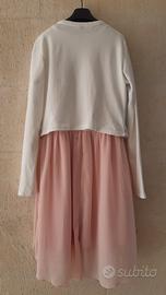 Abito cerimonia bambina Idexè. Due pezzi, vestito aperto dietro con lampo, realizzato in paillettes e cotone, con balza di Tulle sul fondo, bolero realizzato in cotone con paillettes.