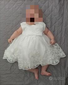 Abito da cerimonia per neonata, taglia 3-6 mesi, colore bianco.