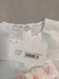 Vendo splendido abito da cerimonia per neonata, taglia 9 mesi. Mai usato con etichetta. Colore bianco e rosa tenue con balze e fodera.
