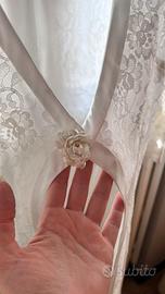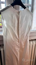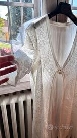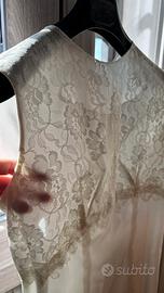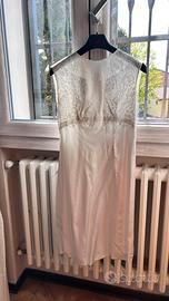 Due pezzi. Abito smanicato con corpetto in pizzo e spolverino con chiusura a fiore. Sartoriale. Dovrebbe vestire taglia 40. Piccoli segni del tempo facilmente eliminabili con adeguato lavaggio. Prezzo regalo