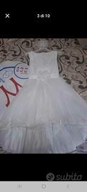 Vendo bellissimo abito da comunione bimba usato solo x qualche ora x la comunione di mia figlia giugno 2025 quindi come nuovo, acquistato dal negozio Martone a Napoli. Veste tranquillamente per una bimba dai 10 ai 13 anni. Ha una buona vestibilità tramite le stringhe del corpetto che sono regolabili. Pagato Euro 500 lo vendo la metà vero affare E. 250,00 non trattabili. Ho anche accessori ovviamente a parte giacchino NUOVO tg. 42 mai indossato e fiocco acconciatura di Carlo Pignatelli, scarpe Mayoral n. 38. Ritiro a mano zona Marano di Napoli. MAX SERIETA