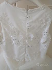 Svendo per inutilizzo Abito per comunione bianco con ricami a rilievo e perline indossato per qualche ora+ coprispalle tulle color avorio 10 anni Elisabetta ferri mai indossato.