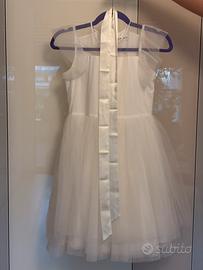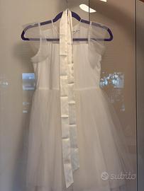 Vendo abito Melby per prima comunione anni 12, bianco con tulle, in ottime condizioni (usato solo il girono della comunione). Veste giusto, non abbondante. Completamente foderato, non genera alcun tipo di prurito perchè il tulle non entra in conatto con la pelle. Cintura in raso bianco, eventualemnte disponibile anche in rosa.