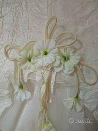 Vendo abito da comunione o paggetta per bimba, tessuto tulle organza e seta, colore panna, compreso nel prezzo coprispalle, il tutto comprato in boutique a 300€. Indossato una volta.