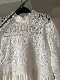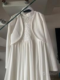 Vendo abito per la cresima tg 10 anni 140cm bianco, usato un solo giorno. Abito lungo con strascico, corpetto in pizzo, foderato, cerniera dietro, ha uno spacchetto per agevolare la camminata. Collant bianche incluse, bolerino copri spalle.