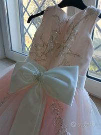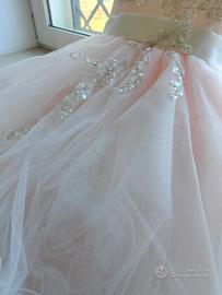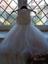 vendo bellissimo vestito da cerimonia/damigella. realizzato a mano e ricamato a mano con dettagli in gioiello.per un bambina di circa tre anni