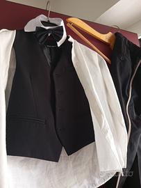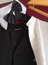 Elegante completo Anthony Morato.. Gilet +Pantaloni neri con bande laterali colore crema. Camicia Coreana in Lino. Papillon staccabile. Usato 1 volta. Disponibile alla prova. In ottimo stato. Taglia 8.