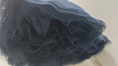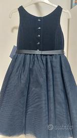abito da cerimonia NUOVO con etichetta, in velluto blu, con gonna a più strati di tulle, taglia 4 anni.