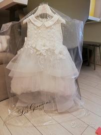 Splendido abito da cerimonia o damigella."COLLEZIONE MODI' ":abito con maniche a giro, colore bianco, elegante strascico, corpetto lavorato con applicazioni luminose, taglia 22 (3/4 anni).
