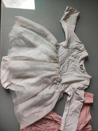 Usato una volta, abito bianco gonna in tulle con brillantini, abito rosa gonna in pizzo. Taglia 56, 1/2 mesi. Venduto singoli o in coppia PREZZO AL SINGOLO