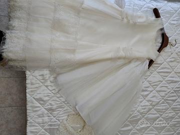 bellissimo abito da comunione / damigella. con sottogonna in tulle per dare volume, completo di coprispalla. piccola macchia, davvero impercettibile sulla gomma come da foto.