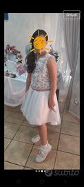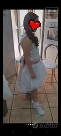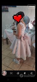Taglia S da donna Abito realizzato sartorialmente con stoffe di altissima qualità come cotone pelle uovo come fodera misto seta tulle mano sposa e pizzo rebrodè francese composto da 2 pezzi corpetto e gonnellone . Colore bianco e rosa cipria.Sul corpetto è cucita una cintura interamente in swarosky.Il fiocco sul retro si può anche togliere . Nel prezzo ci sono decorazioni per capelli in swarosky e coroncina e bracciale fiori. Compreso uno short jeans con lo stesso pizzo eventualmente si volesse togliere il gonnellone.Pagato 900 € . Vendo a 270 €.Disponibile a mandare misure in centimetri su richiesta.